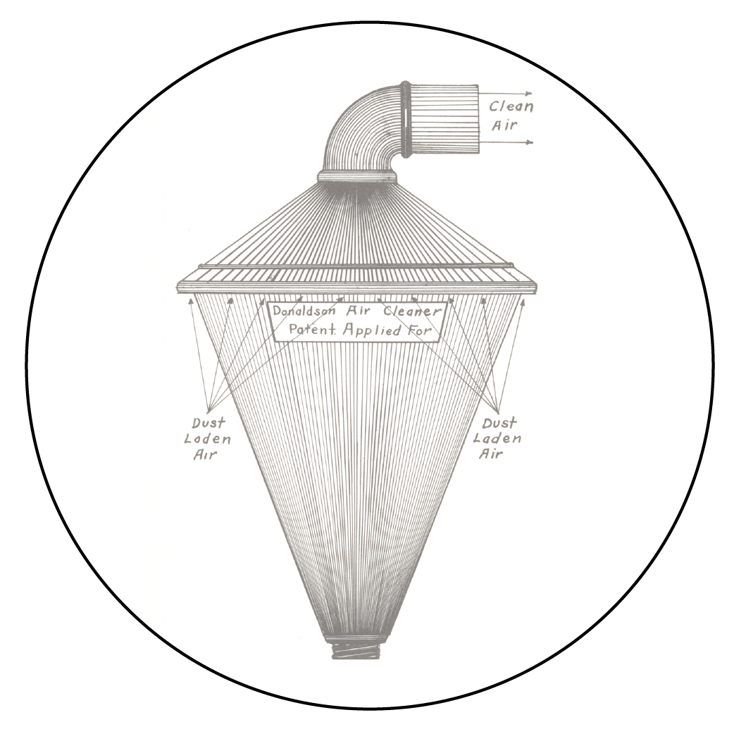 In 1915, a young Frank Donaldson Sr.—then a Bull Tractor Company salesman—visited a customer whose tractor kept breaking down in his dusty field. Frank hand-fashioned a simple air cleaner to protect the engine and invented the world’s first effective air cleaner for a tractor engine.