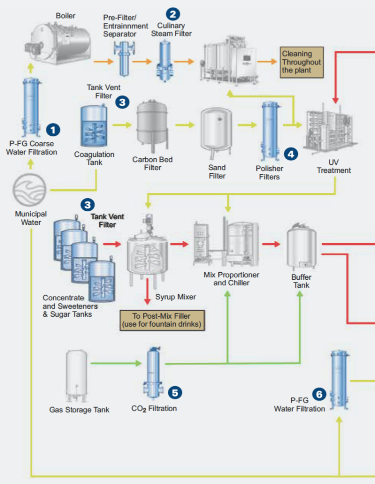 While facilities vary, in general, filtration is recommended at the following stages of beverage processing: