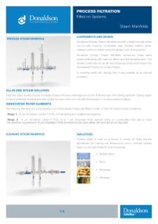 Donaldson’s Steam Manifolds are designed for the purification of culinary and process steam and yield low differential pressure at high flow rates. They are to be used in new or existing culinary and process steam applications, including anywhere Donaldson steam filters are sold today.